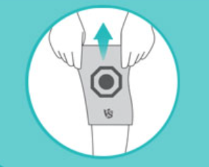 1. Pull the top and aim the circle pattern to the kneecap.